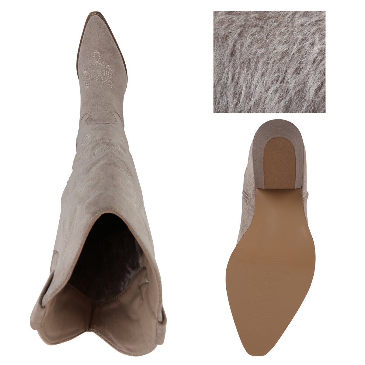 Die Cowboystiefel liegen im Trend und dürfen in keinen modernen Kleiderschrank fehlen. Die Oberfläche aus Kunstleder punktet mit feinen Stickereien, die die Stiefel bestens in Szene setzen. Die Western Boots begeistern mit einem 5,5 hohen Trichterabsatz und einer spitzen Schuhfront. Das An- und Ausziehen wird dank eines Reißverschlusses ein Kinderspiel. Die Freizeit-Schuhe werten jedes Outfit auf und sind sowie mit Jeans als auch Kleid kombinierbar.