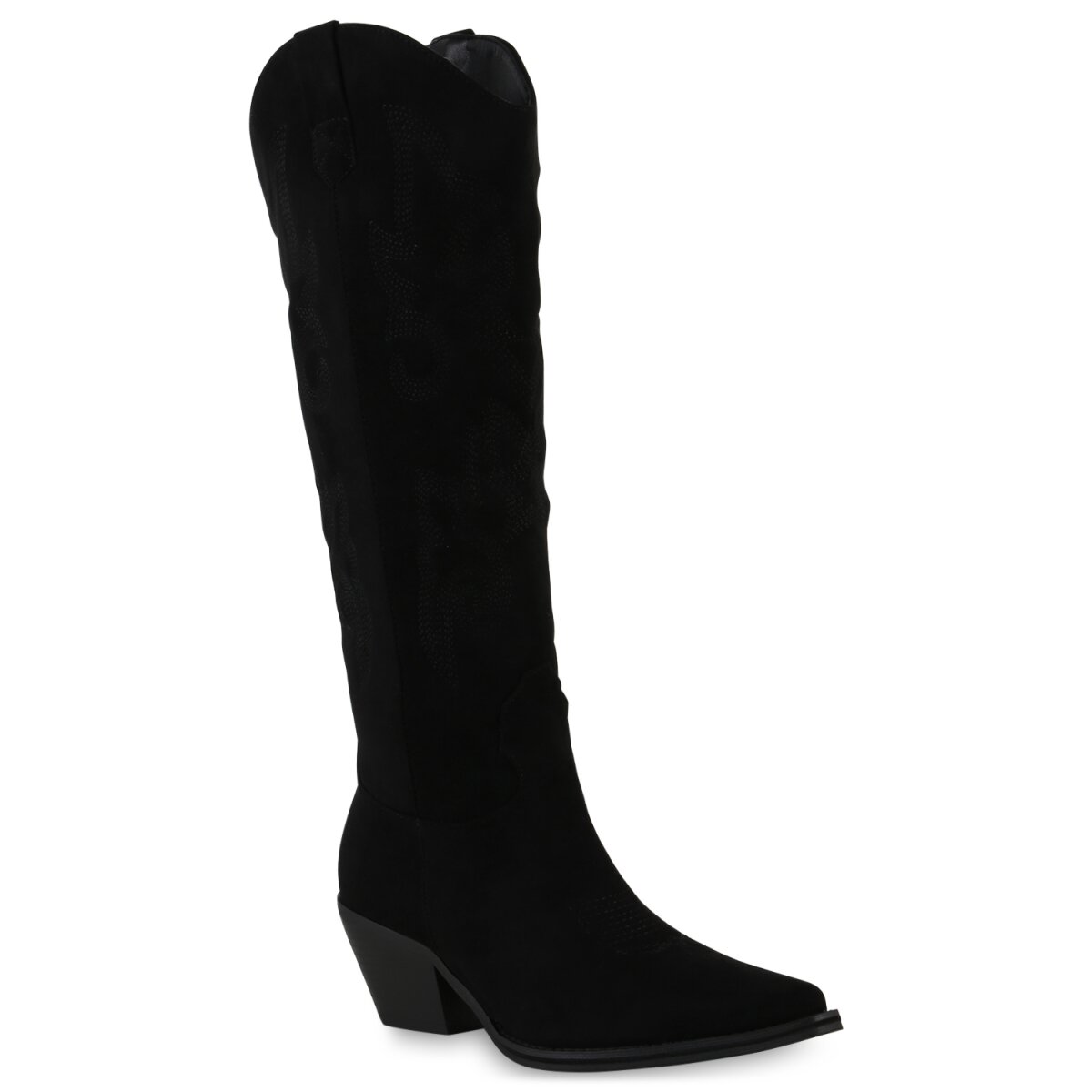 Die Cowboystiefel liegen im Trend und dürfen in keinen modernen Kleiderschrank fehlen. Die Oberfläche aus Kunstleder punktet mit feinen Stickereien, die die Stiefel bestens in Szene setzen. Die Western Boots begeistern mit einem 5,5 hohen Trichterabsatz und einer spitzen Schuhfront. Das An- und Ausziehen wird dank eines Reißverschlusses ein Kinderspiel. Die Freizeit-Schuhe werten jedes Outfit auf und sind sowie mit Jeans als auch Kleid kombinierbar.
