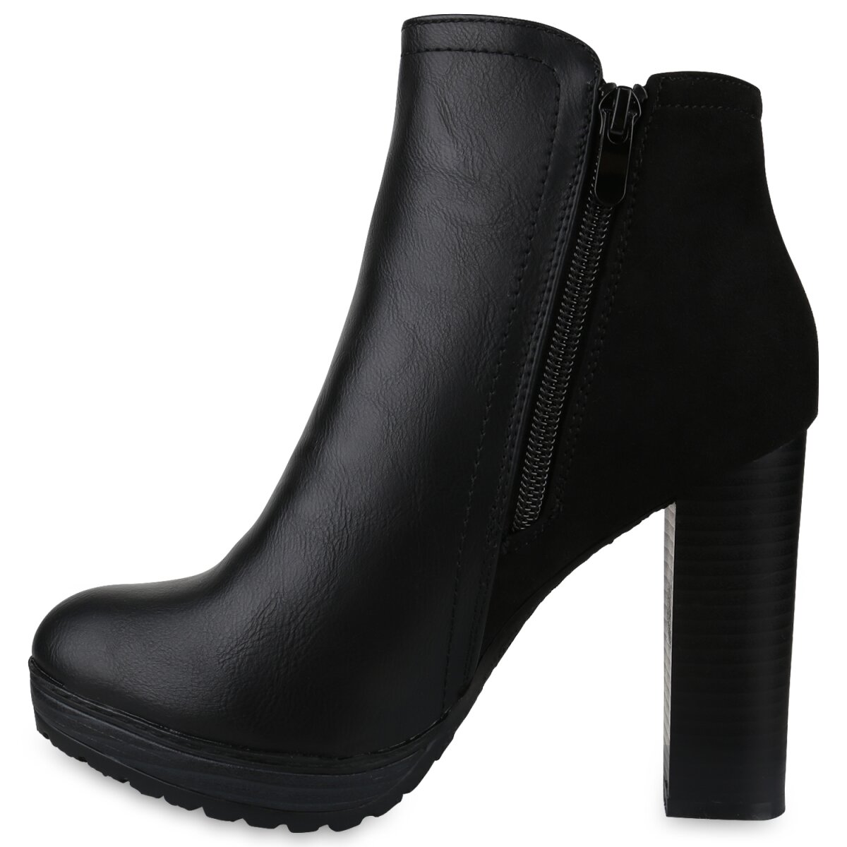 Die Plateau Boots ziehen alle Aufmerksamkeit auf sich und verdienen es getragen zu werden. Die Absatzschuhe haben ein plegeleichtes Obermaterial aus Leder-Imitat und wirken besonders hochwertig. Der Blockabsatz ist 11 cm hoch und wird durch ein 2,5 cm hohes Plateau bestens unterstützt. Das Auftreten wird somit vereinfacht und verbessert die eigene Körperhaltung. Diese Plateauschuhe machen sofort glücklich und lassen sich sowie mit einer Jeans als auch mit einem Rock tragen.