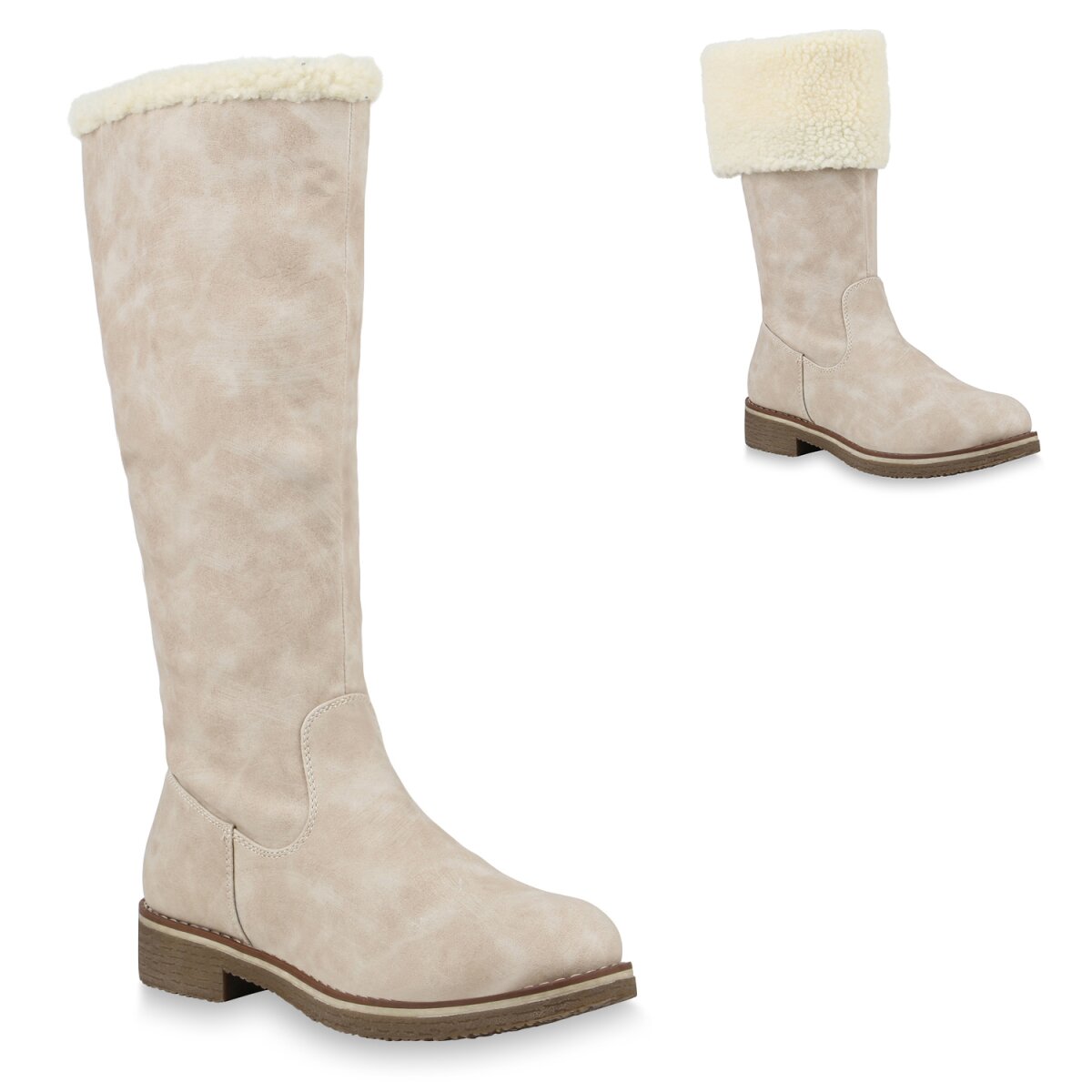 Die Winterstiefel sind bequeme Alltagshelden und verschönern die eisige Jahreszeit. Das Außenmaterial besteht aus glattem Leder-Imitat und Kunstfell im oberen Schaftbereich. Der kleine Reißverschluss befindet sich auf der Innenseite und vereinfacht das An- und Ausziehen. Der Blockabsatz ist 3,5 cm hoch bietet bestes Tragegefühl. Ein modernes Kleid dazu und schon ist man für den Alltag bestens angezogen.